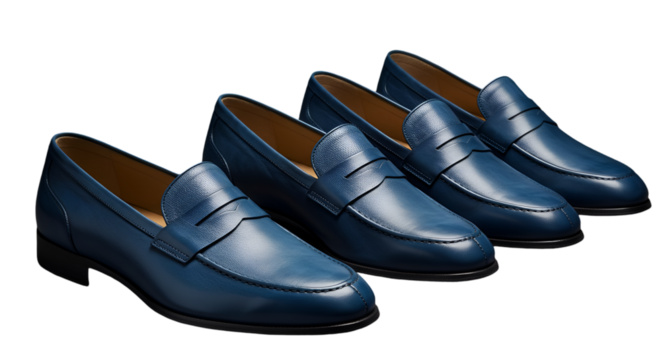 Blue leather loafer shoe footwear isolated on a transparent background