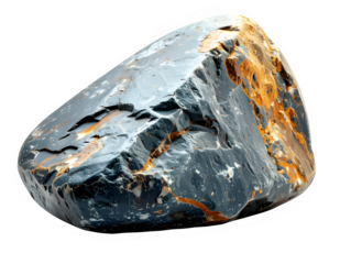A large gray rock with a rough surface and angular edges isolated on a transparent background