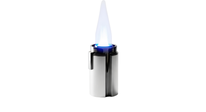 Silver butane lighter with blue flame isolated PNG with Transparent Background