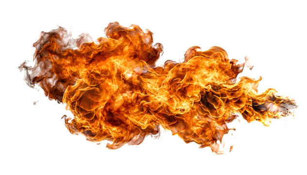 Fiery orange flames burning intensely isolated on white background, removed GB removed