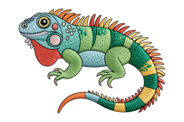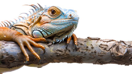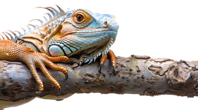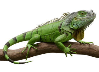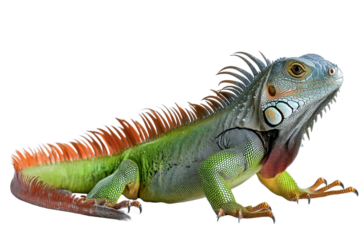 Colorful green iguana displaying vibrant scales, cut out - stock png.
