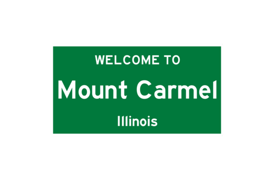 Mount Carmel, Illinois, USA. City limit sign on transparent background.