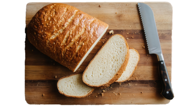 Slice loaf, fresh loaf with knife slicing on transparent background