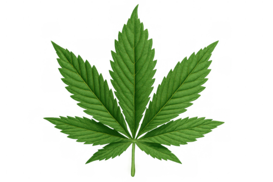 Cannabis sativa leaf on transparent background, showing green medical marijuana herbal plant for health and wellness