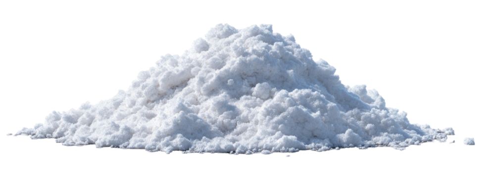 Pile of white powder on a wooden cutting board, implying cooking, baking, or illegal substances on transparent background