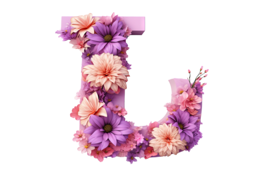 Letter "l" crafted with floral elements in 3d, featuring studio lighting on a PNG transparent background