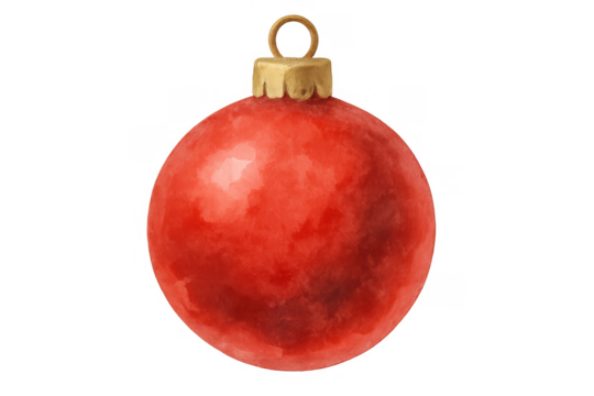 Red christmas ornament with hook, watercolor style, celebrating holiday season and winter festive decoration