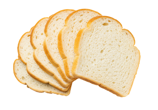 Sliced white bread food photography overhead view studio shot transparent background