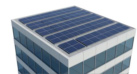Modern Building with Solar Panels on Rooftop Transparent Background