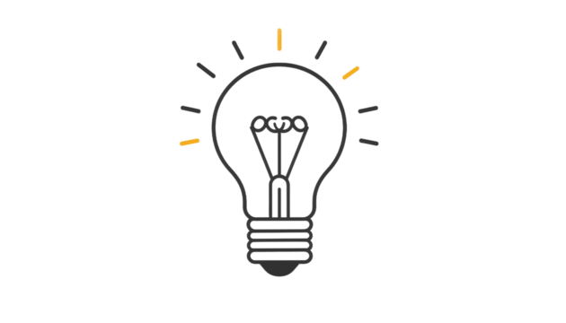 A glowing light bulb icon in 3d rendering against a black background, representing a bright idea
