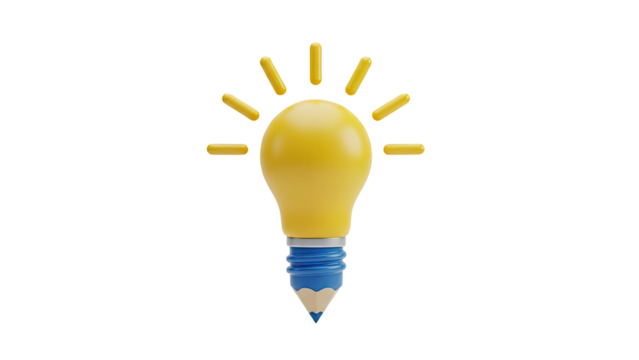 Transparent lightbulb icon with blue rays symbolizing ideas