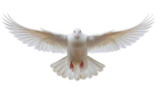 Dove PNG isolated on transparent background, white bird with open wings flying, symbol of peace and freedom, religious and spiritual concept