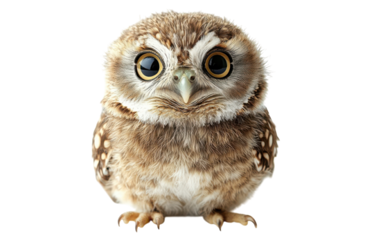 Cute Owl Chick Isolated on transparent Background for Educational and Creative Projects