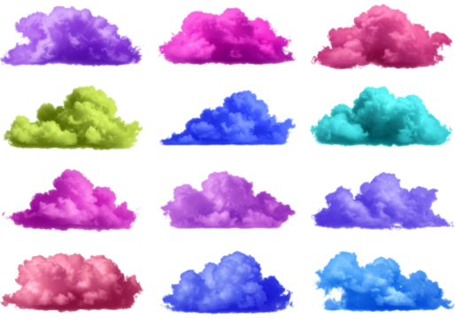Colorful clouds in various vibrant hues float across a dark sky, creating a dynamic and imaginative atmospheric display perfect for creative design projects.
