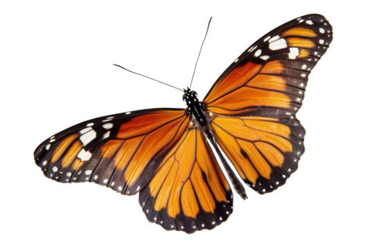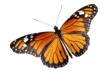 A vibrant orange butterfly with striking patterns resting gracefully against a white isolate background, showcasing natural beauty and elegance.