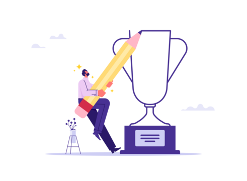 Success mindset, positive attitude to succeed, believe or confidence concept, businessman drawing trophy metaphor imagines success and victory