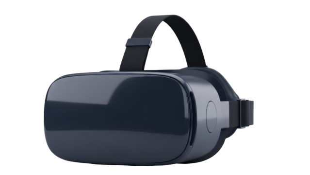 Dark blue VR headset PNG isolated on transparent background, virtual reality glasses for gaming and immersive experiences