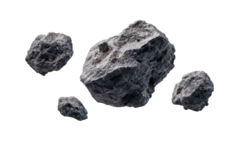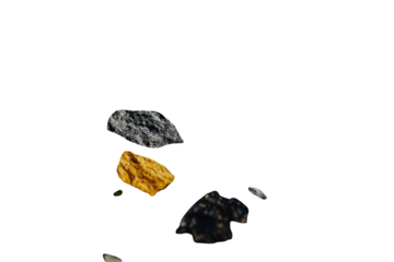 Assorted rocks in motion against a black background