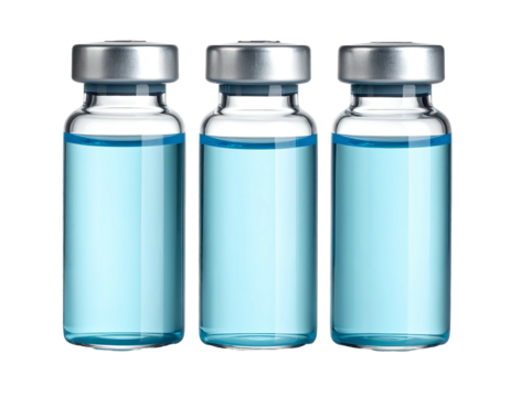A vial of medicine and a syringe are isolated on transparent background, ready for injection