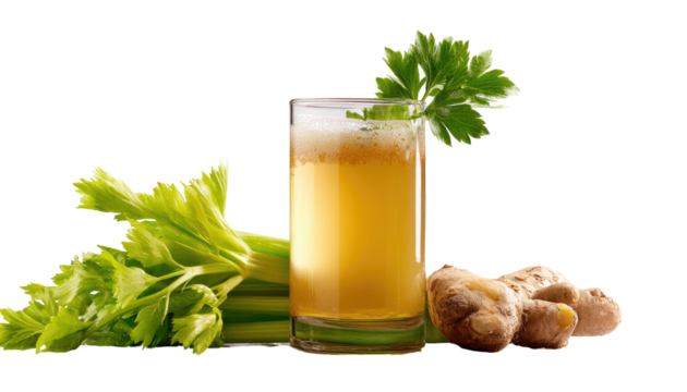 A jar with kombucha and ginger slices ferments for a naturally fizzy, probiotic-rich, tasty and healthy beverage.