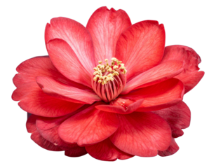 - Single Red Impatiens Flower in Bloom, Close-Up Macro, Transparent Background
