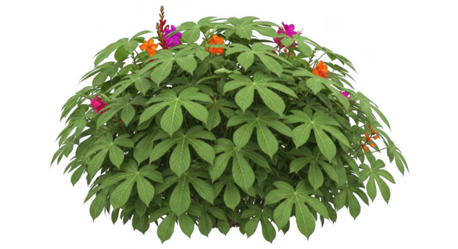 Impatiens balsamina tree, front view, cutout, transparent background, isolate, Vibrant purple flowers bloom on lush green shrub, bringing life to space