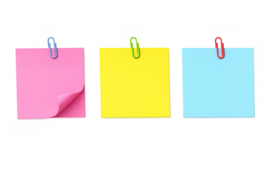Colorful sticky notes with paper clips creating business reminder empty message memo space for important information