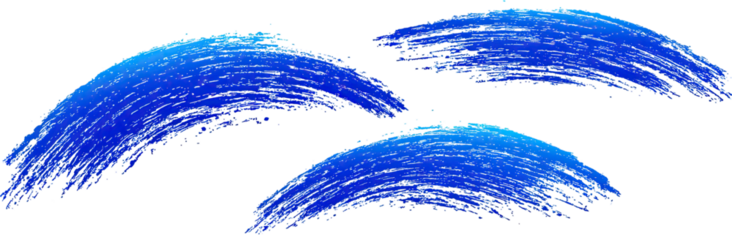 Abstract design of three overlapping,  vibrant blue brushstrokes against a black background