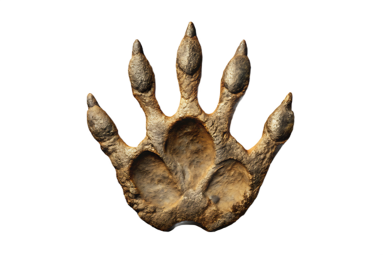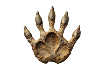 Isolated imprint of animal paws in sand, trace in sand, bear footprints, bear paws, canine