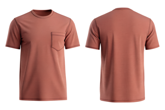 Stylish salmon short sleeve t-shirt with chest pocket front and back view for apparel design