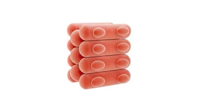 3D rendering of a cluster of rod shaped bacteria on transparent background
