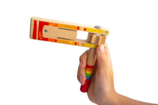 Bambino suona uno strumento musicale Raganella