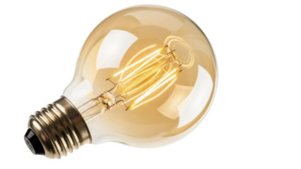 Classic incandescent light bulb isolated PNG on transparent background, vintage style electric lamp for retro design and energy concepts