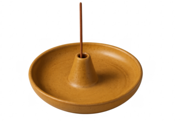 White ceramic incense holder with burning incense stick isolated on transparent background