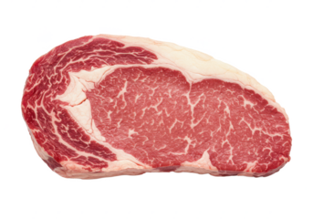 Raw ribeye steak isolated on white background, no depth of field, sharp.