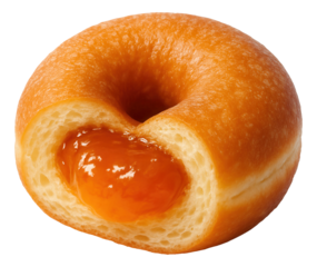 Donut with a visible incision showcasing tangy apricot jam.