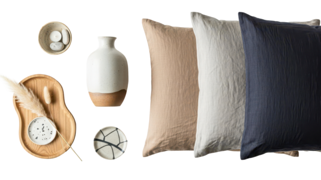 minimalist wooden furniture set including a cubical storage cabinet a round stool and a classic