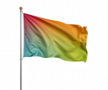 Gradient spectrum flag waving on pole, representing diversity and inclusive communities, hope and freedom