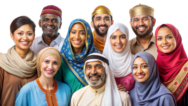 Smiling diverse group on transparent background