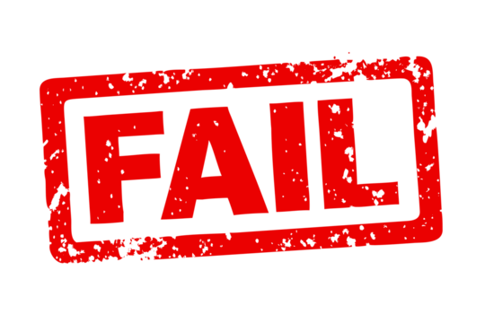 Angled red FAIL grunge rubber stamp within a rectangular frame on a dark black surface