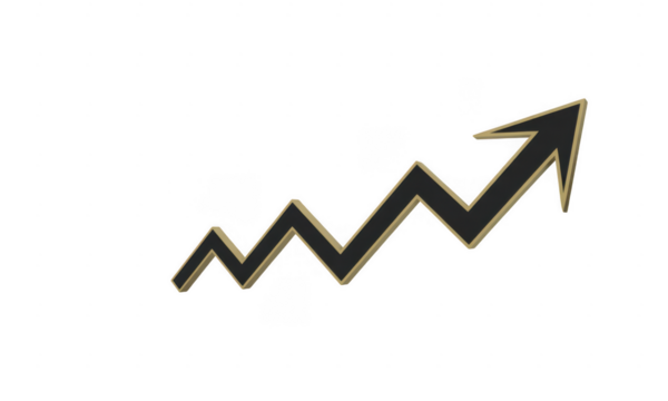 Dynamic graph arrow illustrating rising trends on transparent background