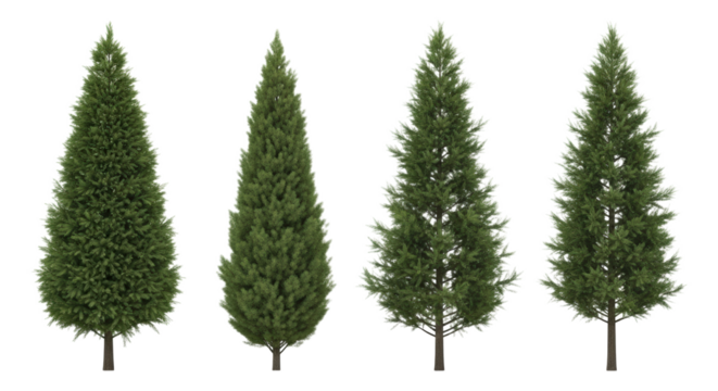 Four Distinct Evergreen Trees Isolated On A transparent Background