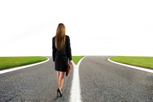 businesswoman having doubts about the right way to choose