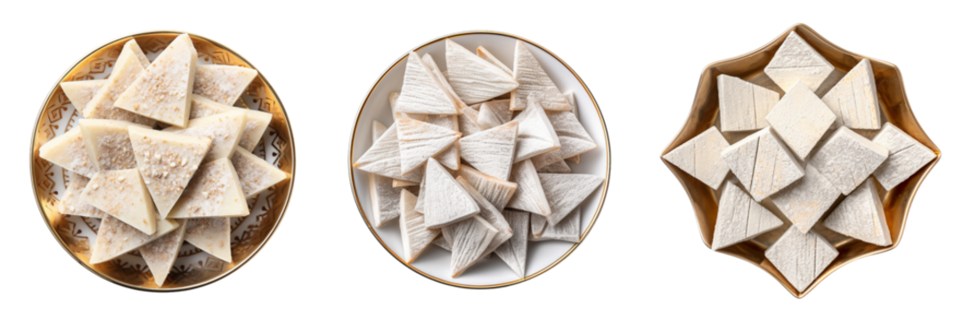 Set of kaju katli top view isolated on a transparent background