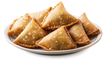 Delicious gujiya indian sweets resting on white plate with transparent background