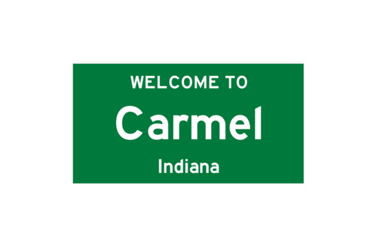 Carmel, Indiana, USA. City limit sign on transparent background.