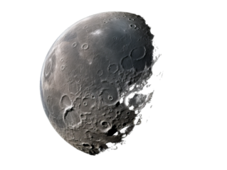 A top wiev of the moon isolated on transparent background.