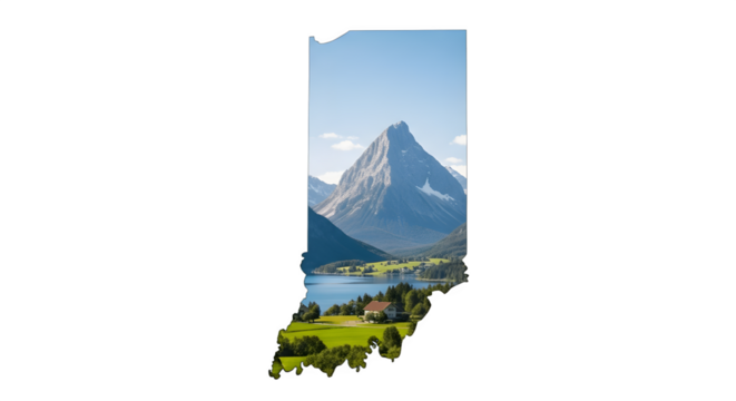 Indiana State Landscape with Mountains and Lake.