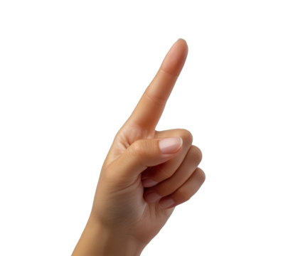 Transparent PNG Hand Gesturing, Pointing, Close-up of a Female Hand with Index Finger Extended, Isolated on Transparent Background, Perfect for Design Elements and Mockups