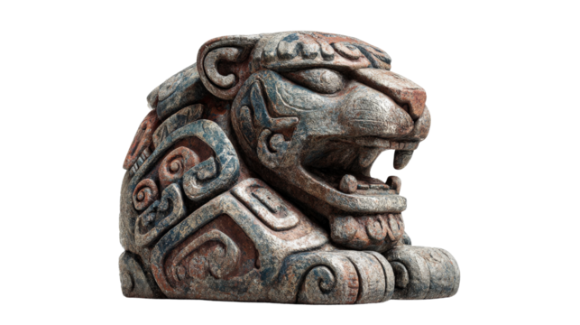 Mayan jaguar statue, isolated on a Transparent background, PNG file.